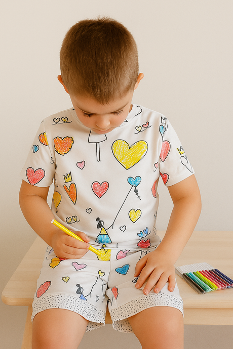 Pijama infantil para pintar y personalizar – Papachoa México short corazón