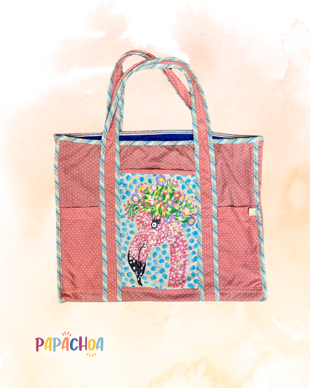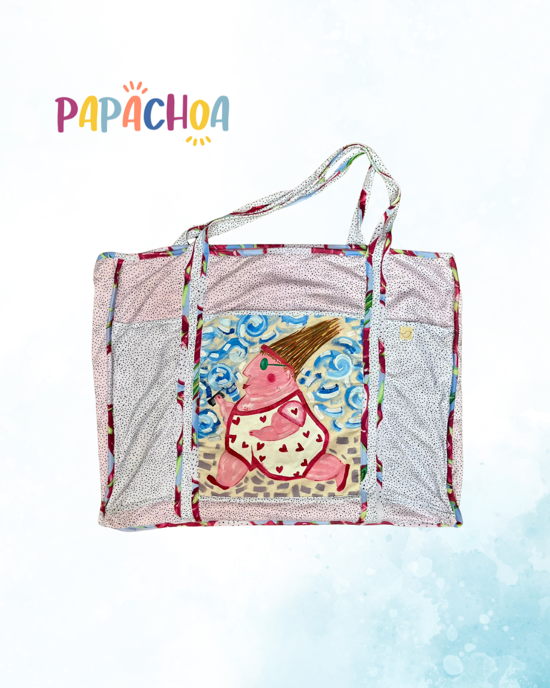 La bolsa grande Papachoa México es perfecta para la playa, el súper, viajes familiares o como regalo práctico. Hecha en tela resistente y con estampados exclusivos pintados a mano
