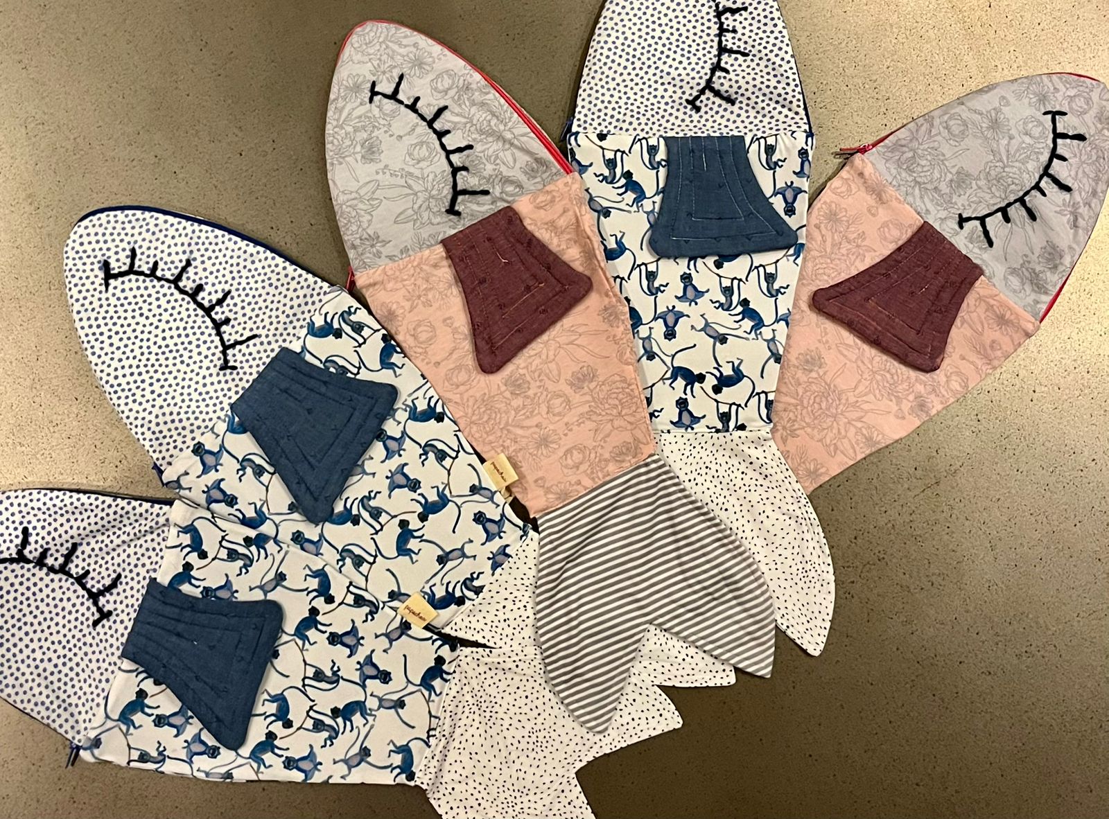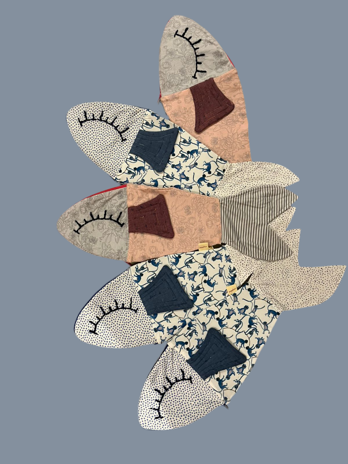 Pez de tela con gorro plastificado para guardar cosméticos, shampoo , cremas traje de baño mojado , colores, y todo lo que le quepa