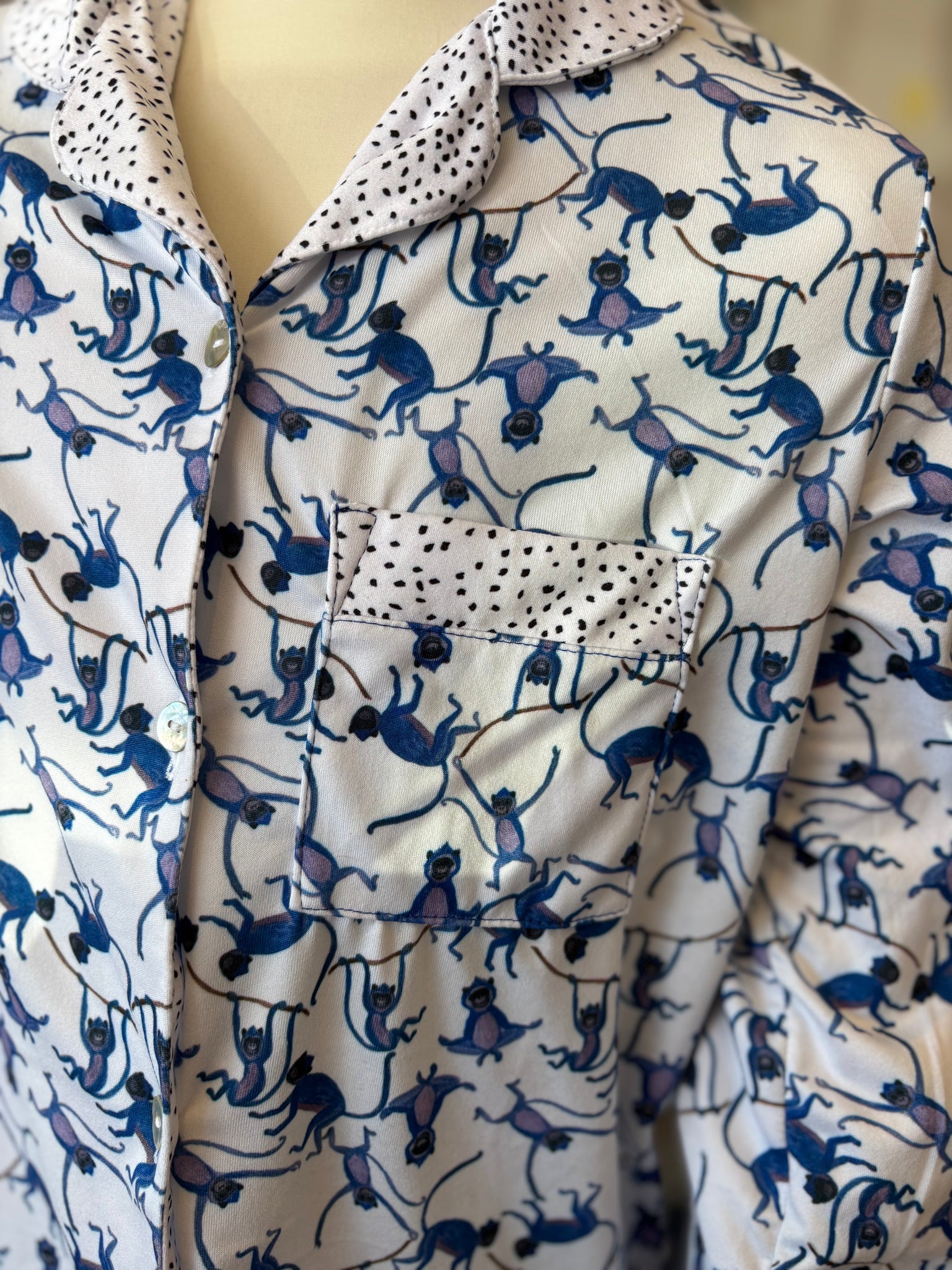 Pijama infantil de tela suave con estampados exclusivos de CHANGOS , pantalón y manga larga CAMISA CUELLO CON BOTONES – Papachoa México
